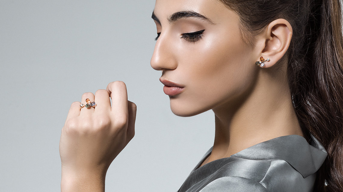 Made from natural briolette sapphires comparable to tiny prisms, the Aurora collection is composed of delicate designs decorated with a rainbow of colours. Aligned playfully together with golden threads, the briolette sapphires are accompanied by sparkling diamonds reminiscent of bright stars dancing alongside auroras in the sky.