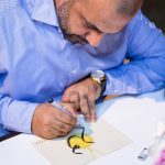 Whilst dinner was served and conversations continued, guests were entertained with a continuance of the Kanoon player performing in the background. As a small thank you for their support, guests were sent home with a sketch of the signature Rouh diamond pendant decorated with their verbiage of choice by a skilled calligrapher hired for the special occasion. Secured with vellum paper printed with the Nadine Jewellery pattern, each individual sketch was rolled and sealed with gold thread in a vintage inspired packaging playing on the brand’s message of passing on timeless treasures.