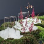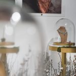 At the exclusive launch in Jeddah, guests were welcomed with an outdoor screening of “Crafting Memories,” a three-minute film starring TV celebrity, Ola Fares. A speech by the designer followed, teasing guests on the voyage that awaited them inside: an “Inspiration Gallery”, fully embellished with twelve portraits told the story of the High Jewellery collections: Hummingbird, Nebula, and Goldenrods. From there, guests were then led to a long hall, where a beautiful moss garden sprinkled with Nadine Jewellery’s masterpieces–Aurora, Sirr, Rouh, and Men, all beautifully displayed in domes.