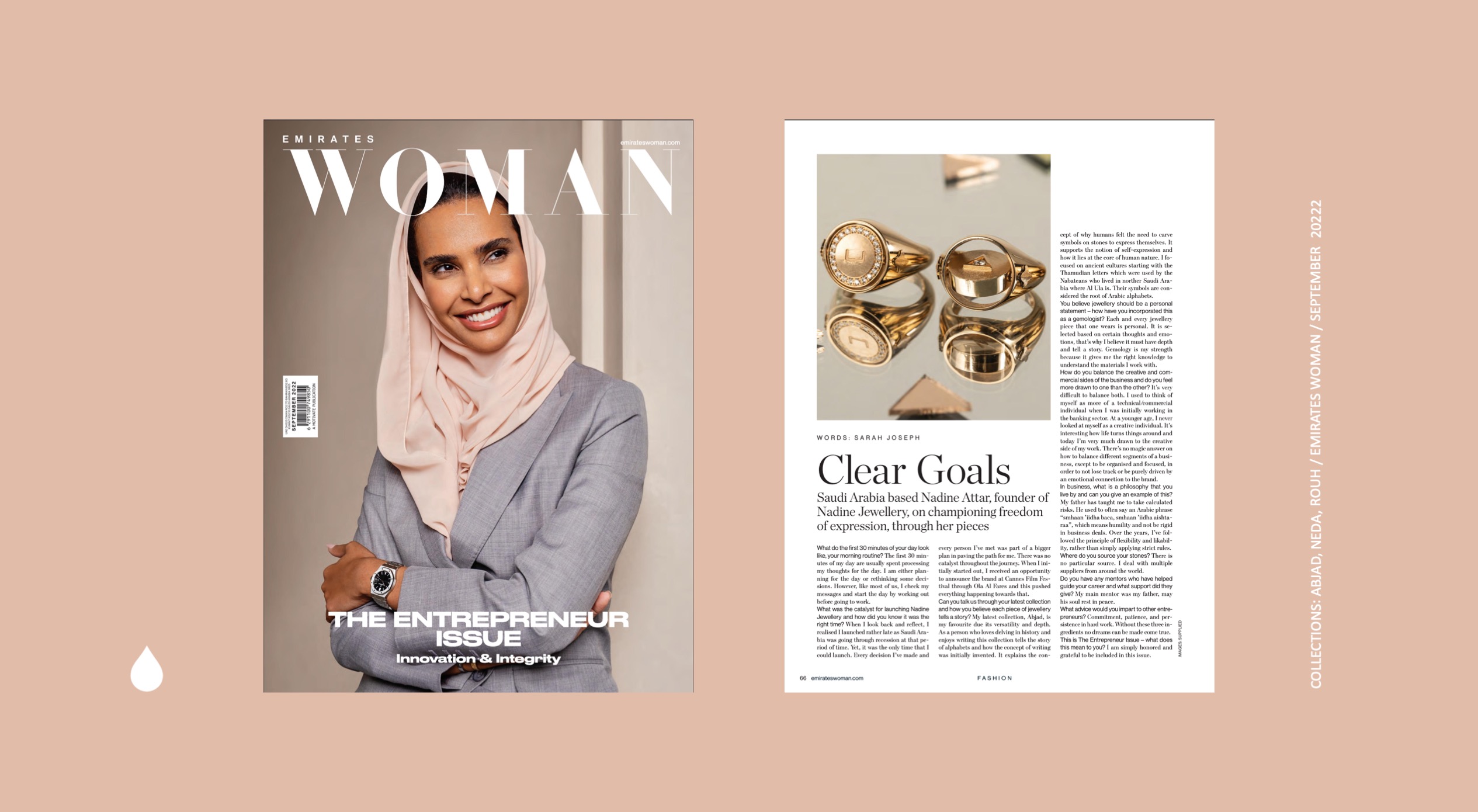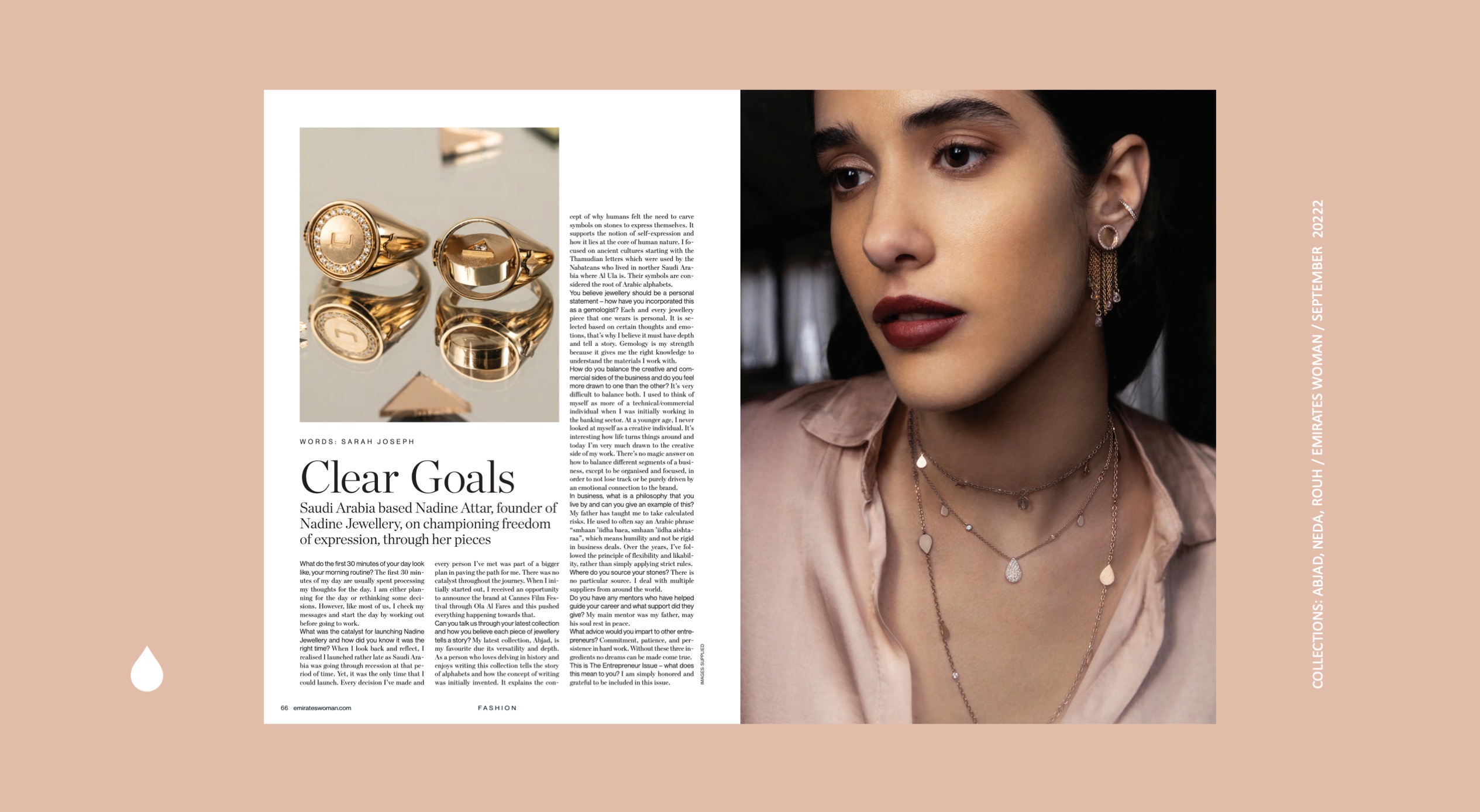 Featured in the Emirates Woman Entrepreneurs Issue for September 2022 Nadine Jewellery is celebrated for championing freedom of expression through design. In an interview with Sarah Joseph, founder Nadine discusses routines, balancing business from commercial to creative, the latest collection, and inspiration.