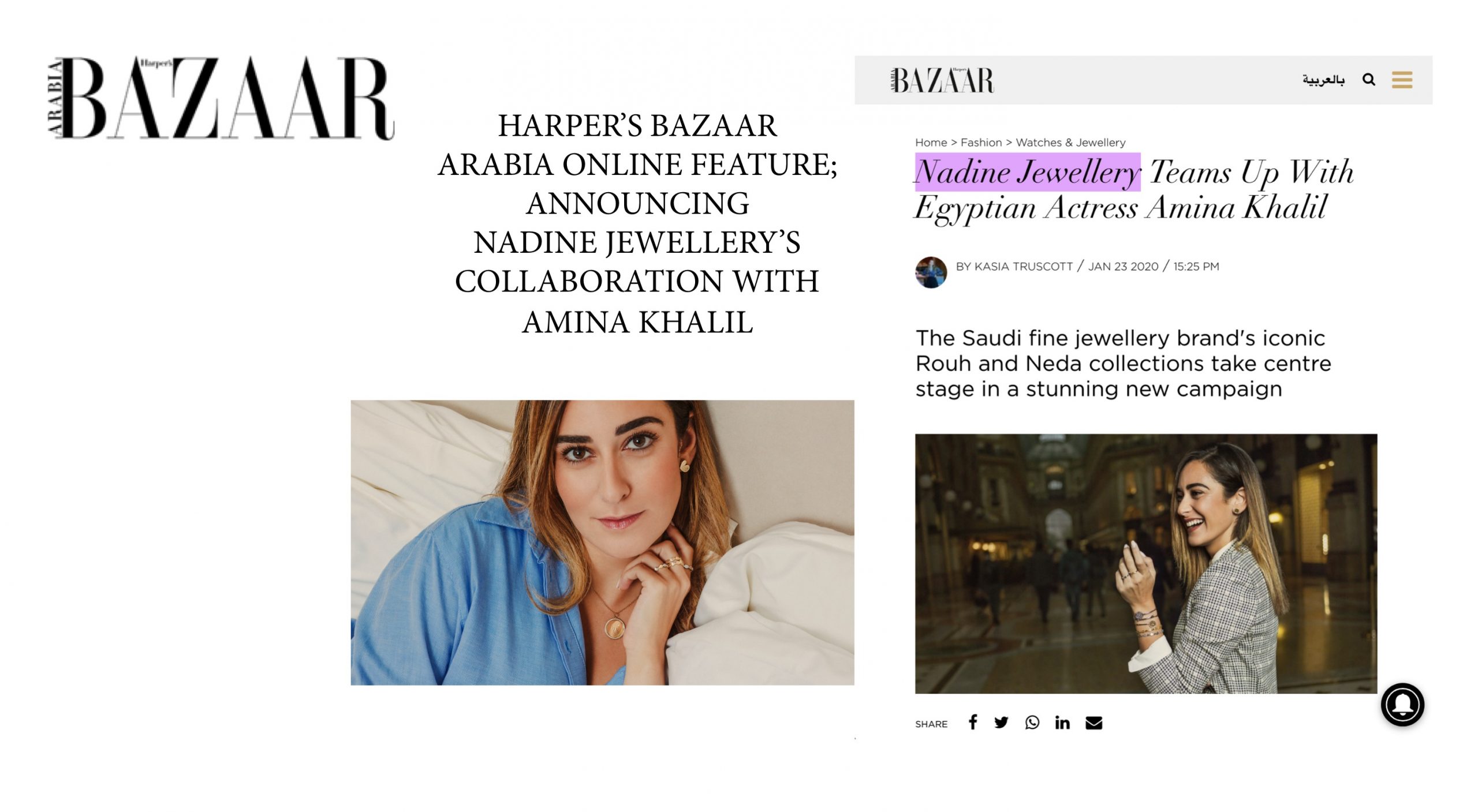 Nadine Jewellery’s collaboration and trip to Italy with Amina Khalil is featured on Harper’s Bazaar Arabia.