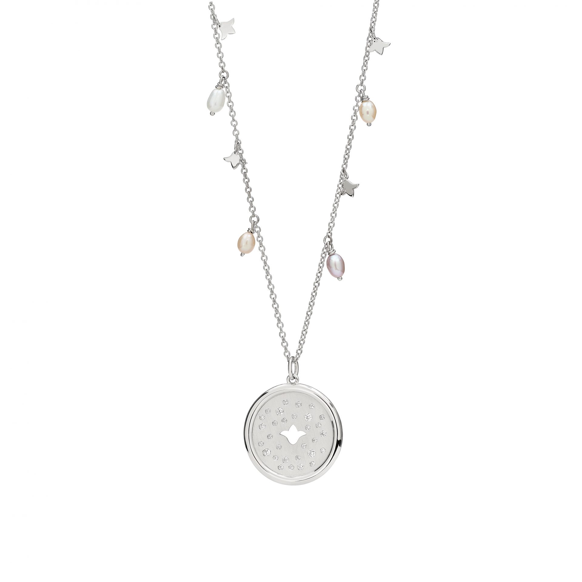 Place an orderBecause the Rouh Collection is about symbolism – where words, places, or icons are used to express the callings of one’s soul – the limited edition ‘Mother’ line carries the Lily emblem, symbolizing the dedication of a mother’s heart and soul. The fresh water pearls decorate its chain, and just like water – a mother is the source of life.